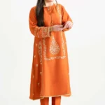 Embrace winter with graceful charm in this lush green three-piece suit, designed for timeless elegance and versatile styling. The flared paneled shirt features delicate embroidery, a rounded neckline with subtle piping, and intricate loop detailing on the sleeves for a touch of sophistication. Paired with fitted trousers and a luxurious jacquard dupatta, this cambric ensemble effortlessly blends traditional craftsmanship with contemporary flair, making it ideal for festive gatherings, weddings, or special occasions.